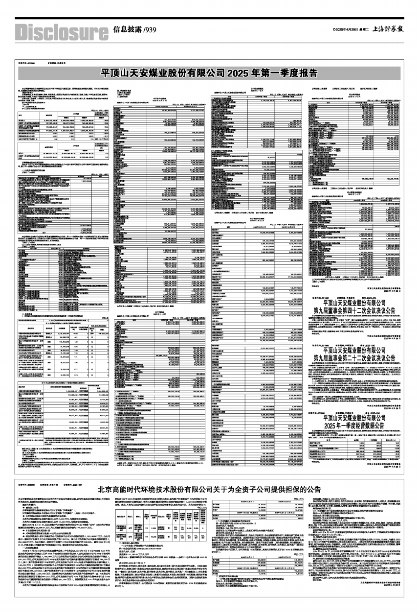 平顶山天安煤业股份有限公司2025年第一季度报告