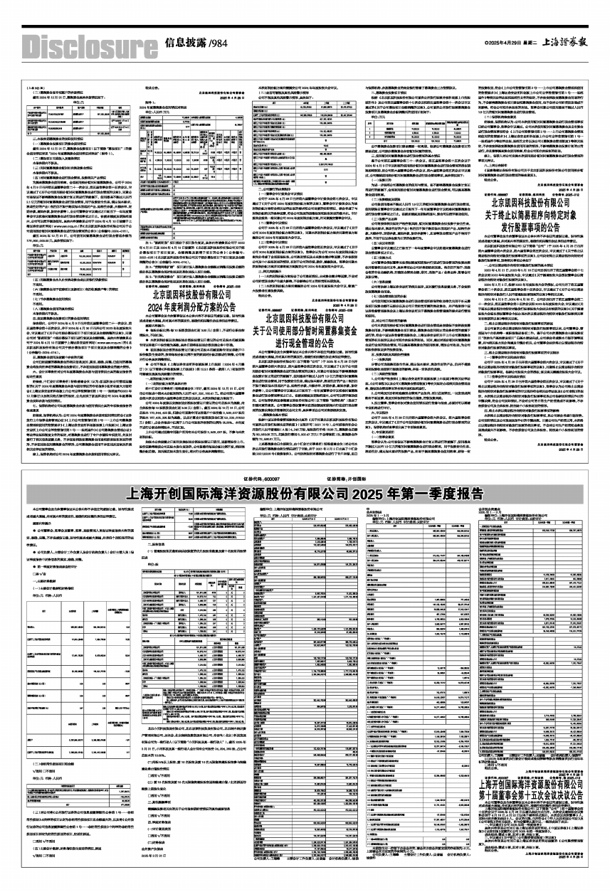 上海开创国际海洋资源股份有限公司2025年第一季度报告