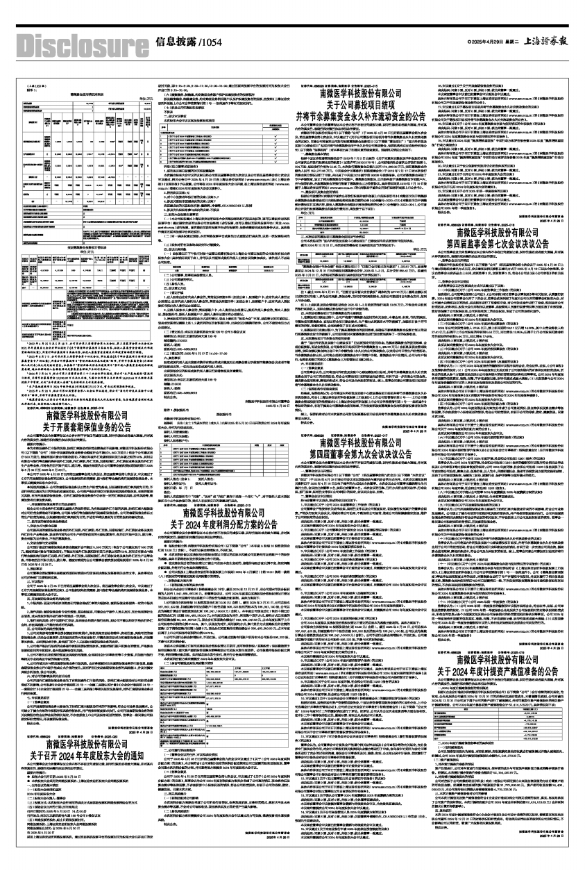 具体内容详见公司于同日刊登在上海证券交易所网站(www.sse.com.cn)的《南微医学科技股份有限公司关于召开2024年年度股东大会的通知》。