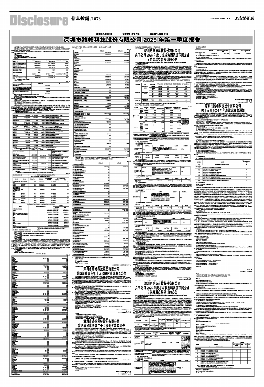 监事会认为:董事会编制和审核的《深圳市路畅科技股份有限公司2025年第一季度报告》程序符合法律、行政法规和中国证监会的规定,报告内容真实、准确、完整地反映了上市公司的实际情况,不存在任何虚假记载、误导性陈述或者重大遗漏。