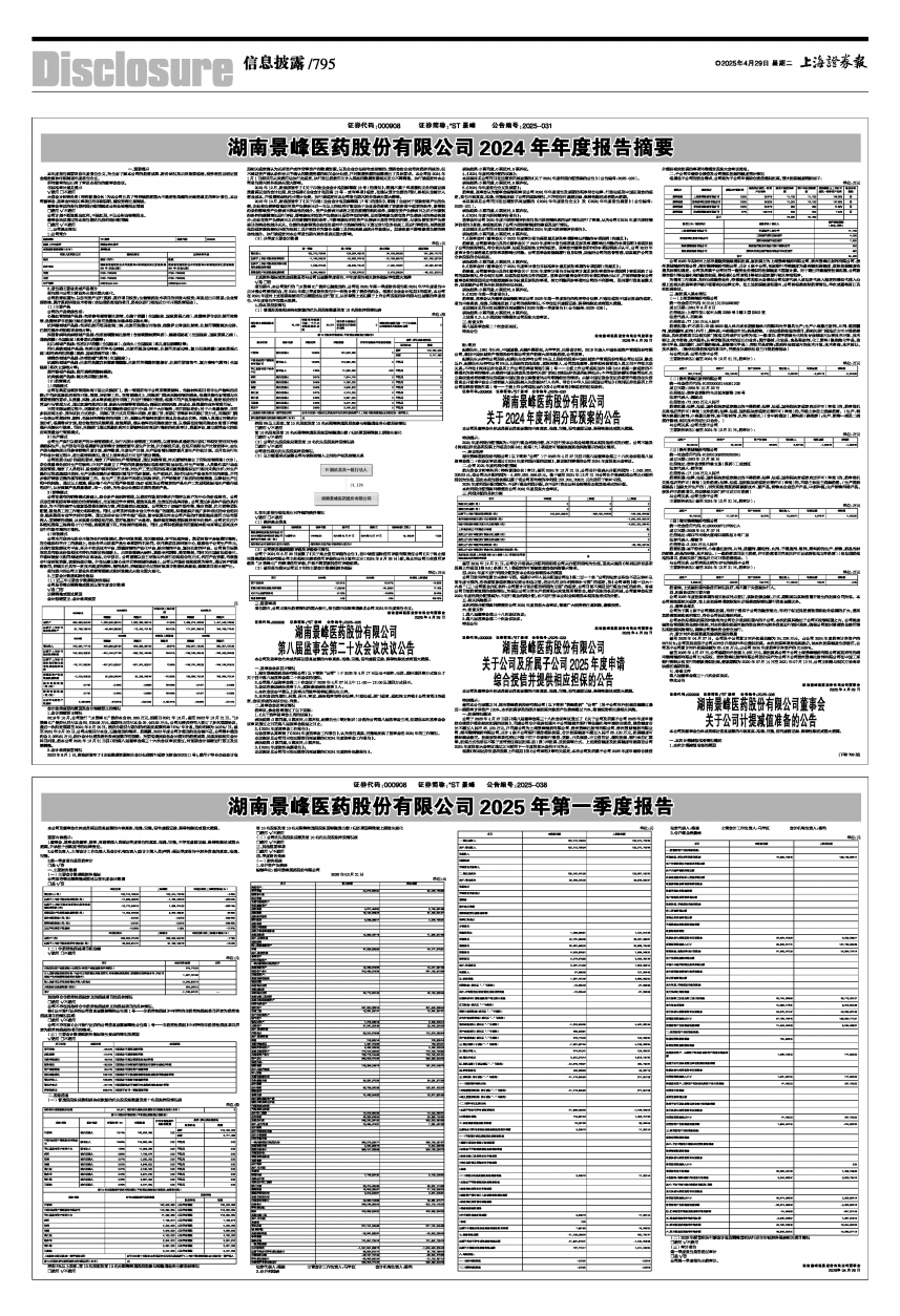 湖南景峰医药股份有限公司2025年第一季度报告