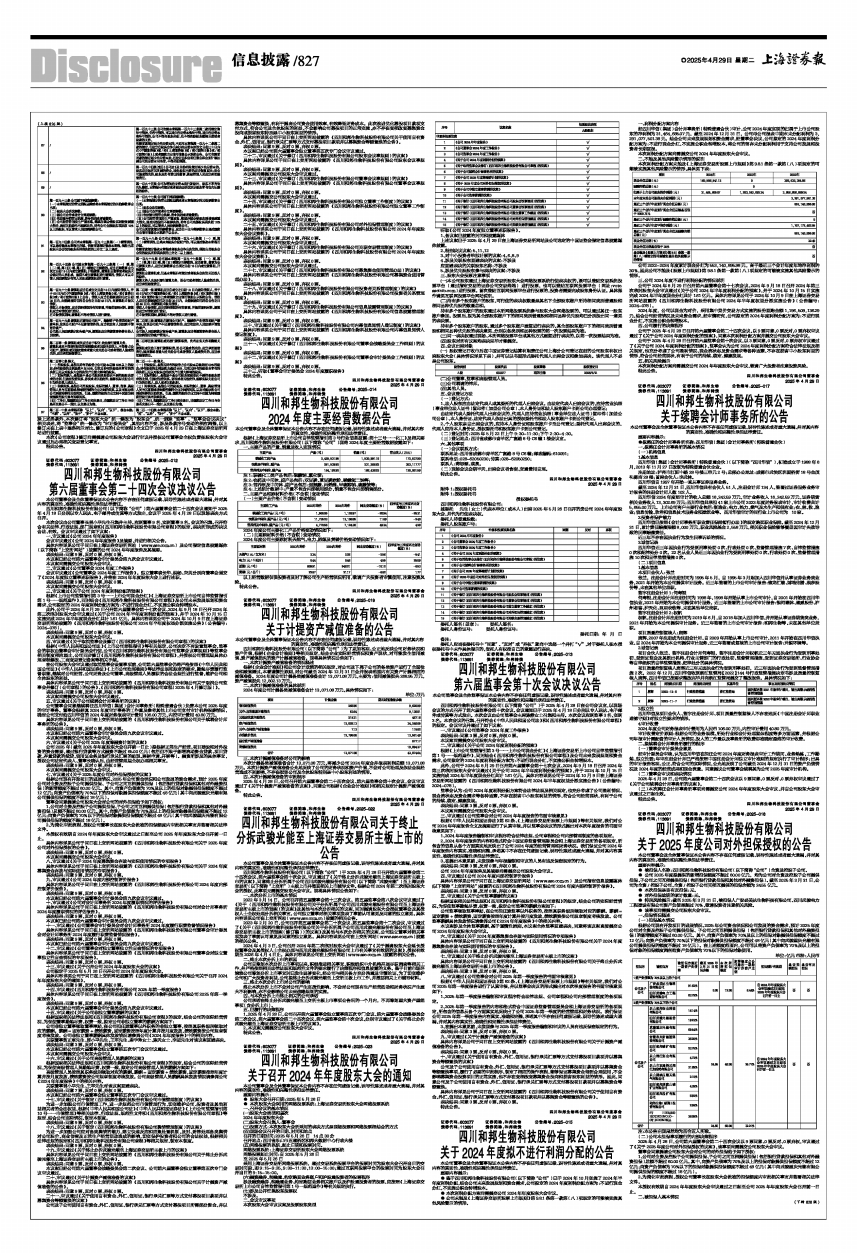 具体内容详见公司于同日在上交所网站披露的《四川和邦生物科技股份有限公司关于召开2024年年度股东大会的通知》。