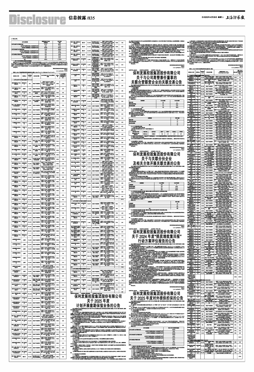 2025年4月27日,公司第七届董事会第九次会议审议通过了《关于与关联合伙企业及相关主体开展关联交易的议案》,结合经营需要,同意公司2025年度与关联合伙企业及相关主体发生共同投资等关联交易金额不超过280亿元。因保利(横琴)资本管理有限公司与公司同受中国保利集团有限公司实质控制,关联董事刘平、陈关中、潘志华、於骁冬、童云翔、张方斌对议案回避表决。相关关联交易尚须获得公司股东大会的批准。