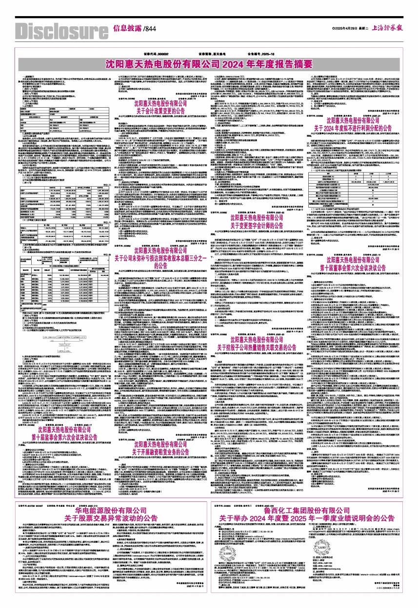 沈阳惠天热电股份有限公司2024年年度报告摘要