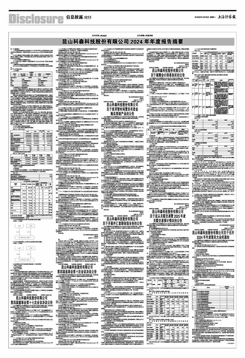 证券代码:603626 证券简称:科森科技 公告编号:2025-018