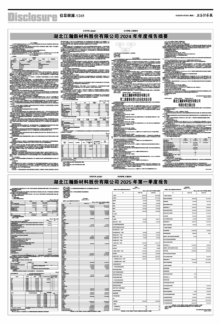 湖北江瀚新材料股份有限公司2025年第一季度报告