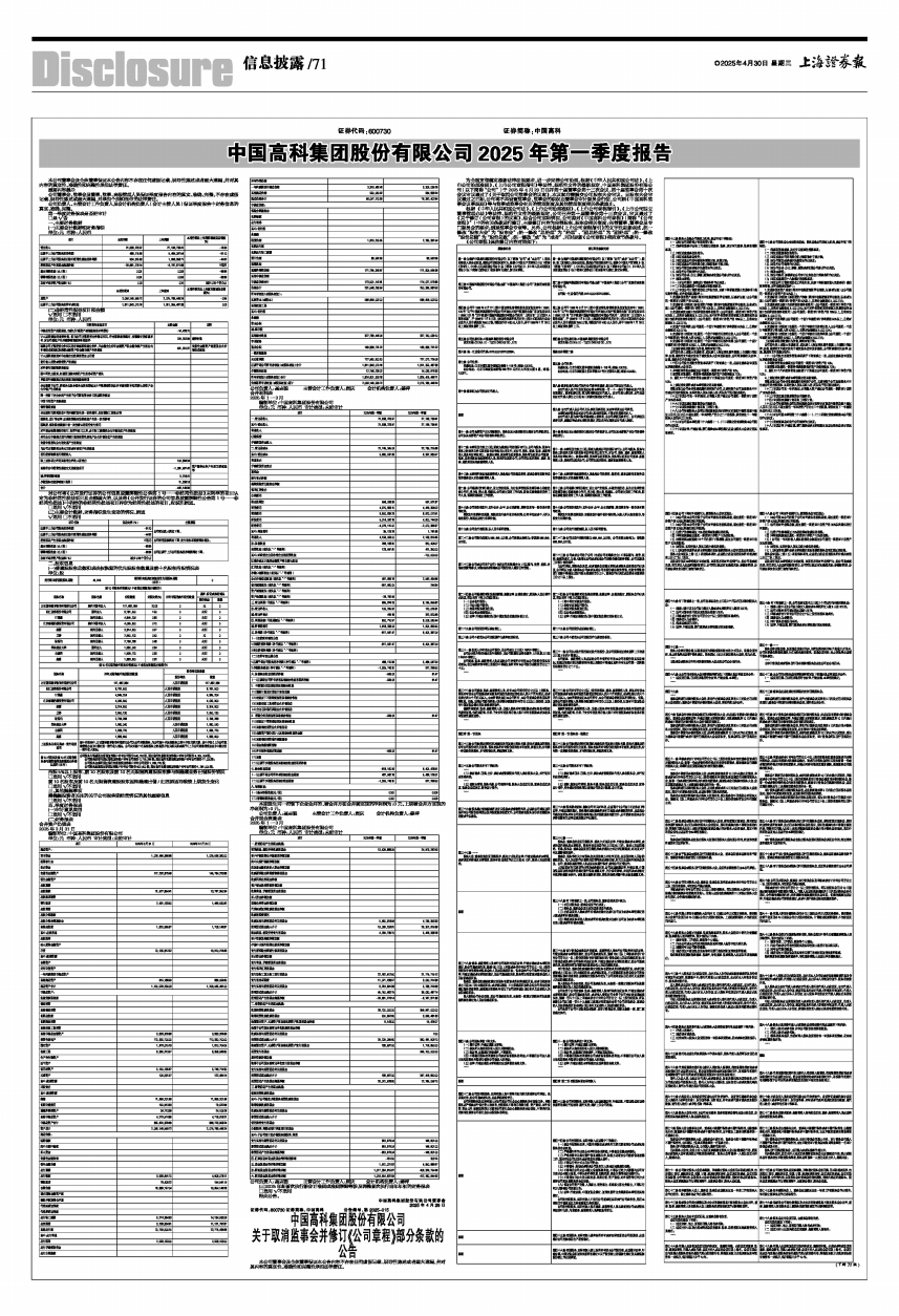 证券代码:600730证券简称:中国高科 公告编号:临2025-015