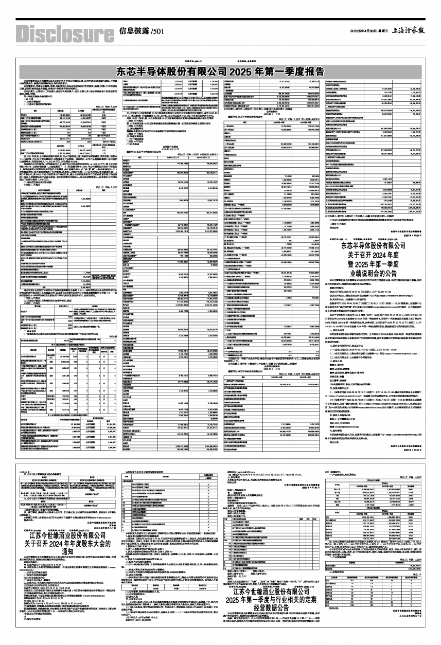 东芯半导体股份有限公司(以下简称“公司”)已分别于2025年04月23日、2025年04月30日发布公司《2024年年度报告》《2025年第一季度报告》,为便于广大投资者更全面深入地了解公司2024年度及2025年第一季度经营成果、财务状况,公司计划于2025年05月13日(星期二)上午10:00-11:00举行2024年度暨2025年第一季度业绩说明会,就投资者关心的问题进行交流。