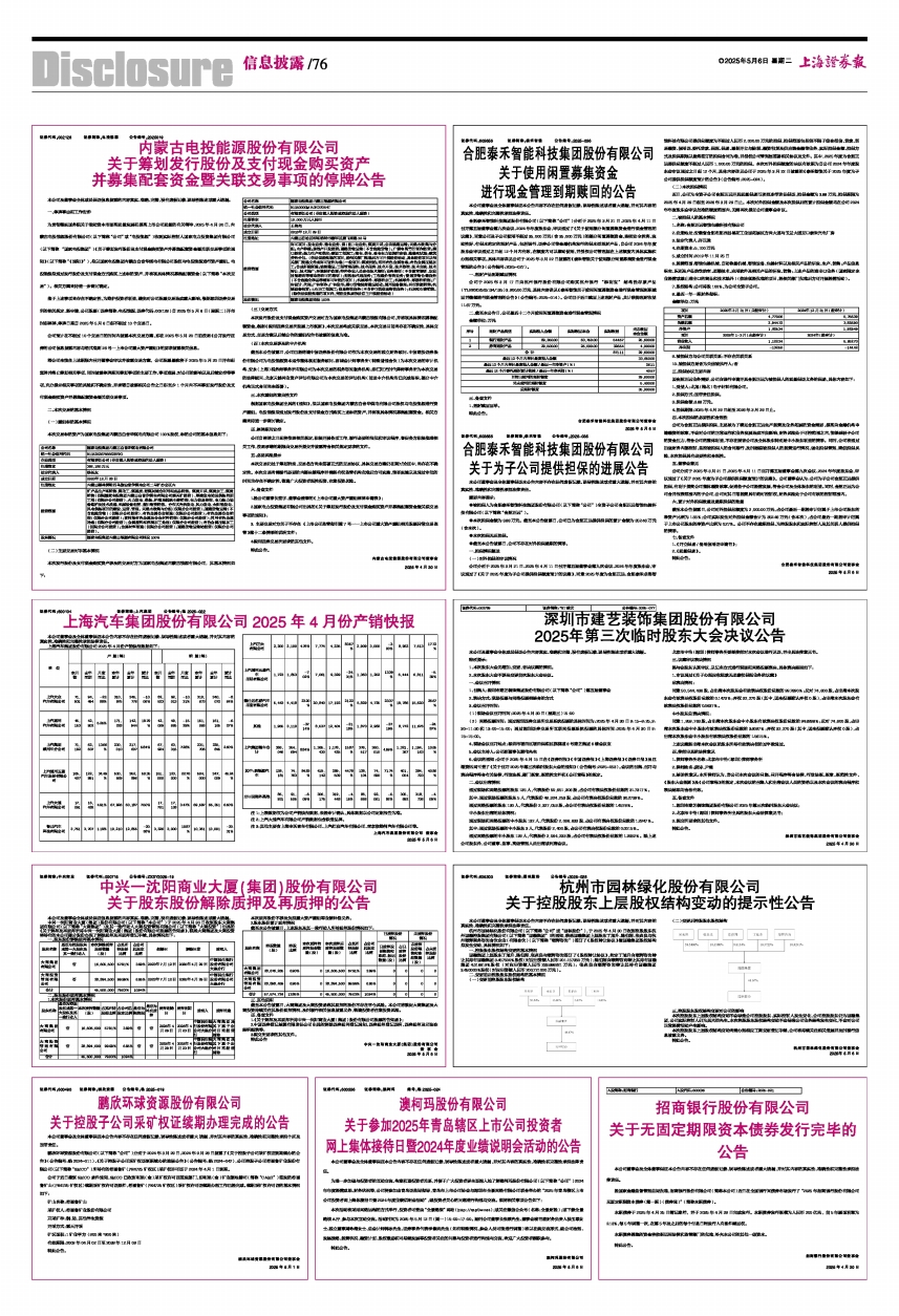 上海汽车集团股份有限公司2025年4月份产销快报