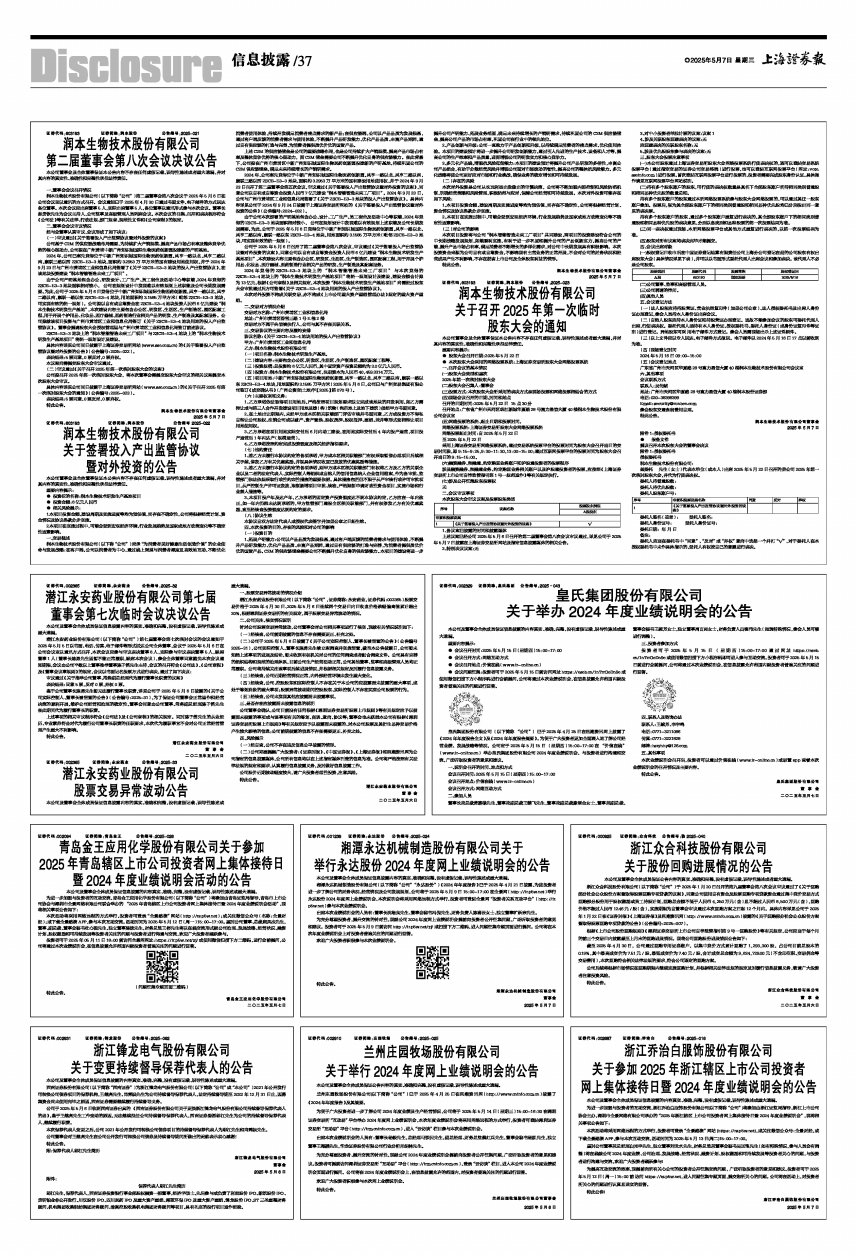 为充分尊重投资者,提升交流的针对性,现就公司2024年度网上业绩说明会提前向投资者公开征集问题,广泛听取投资者的意见和建议。投资者可于2025年5月9日前访问http://ir.p5w.net/zj/或扫描下方二维码,进入问题征集专题页面进行提问。公司将在本次年度业绩说明会上对投资者普遍关注的问题进行回答。