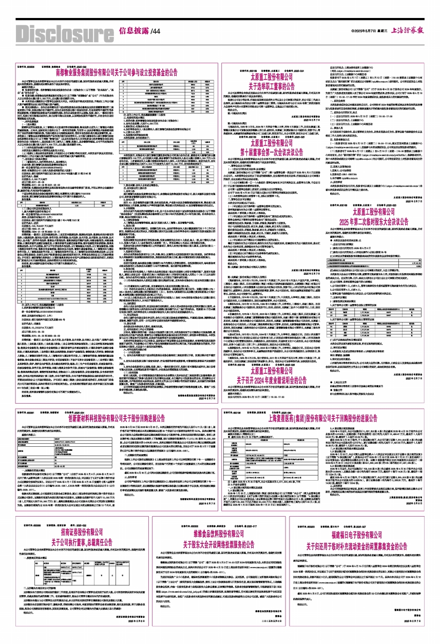 7.雷涛先生,1985年6月出生,硕士研究生,2011年6月毕业于四川大学,同年8月参加工作,高级经济师。历任太原重工综合部秘书科副科长、科长。现任本公司证券事务代表、证券部部长助理。