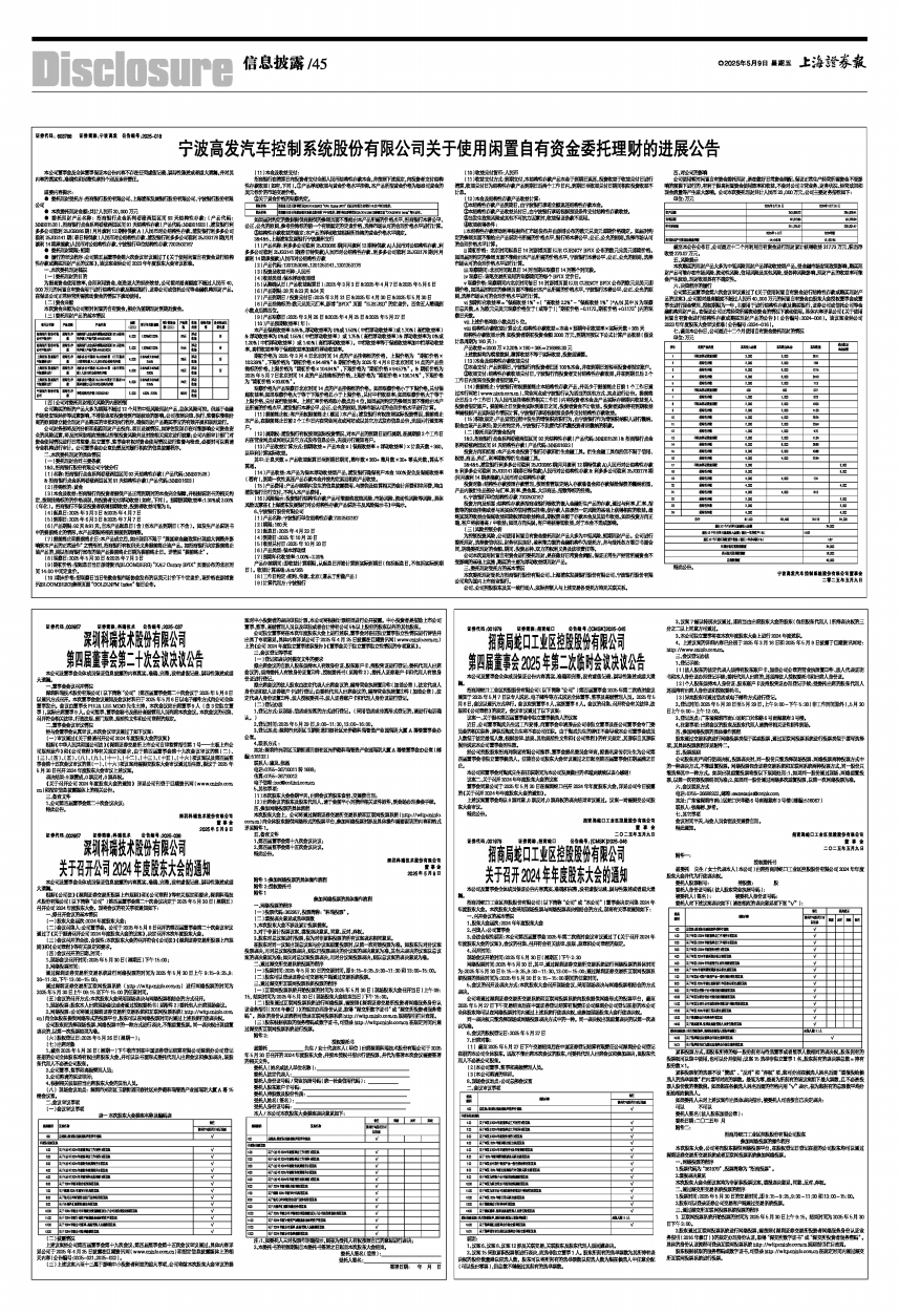 董事会同意公司于2025年5月30日在深圳蛇口召开2024年年度股东大会,详见公司今日披露的《关于召开2024年年度股东大会的通知》。