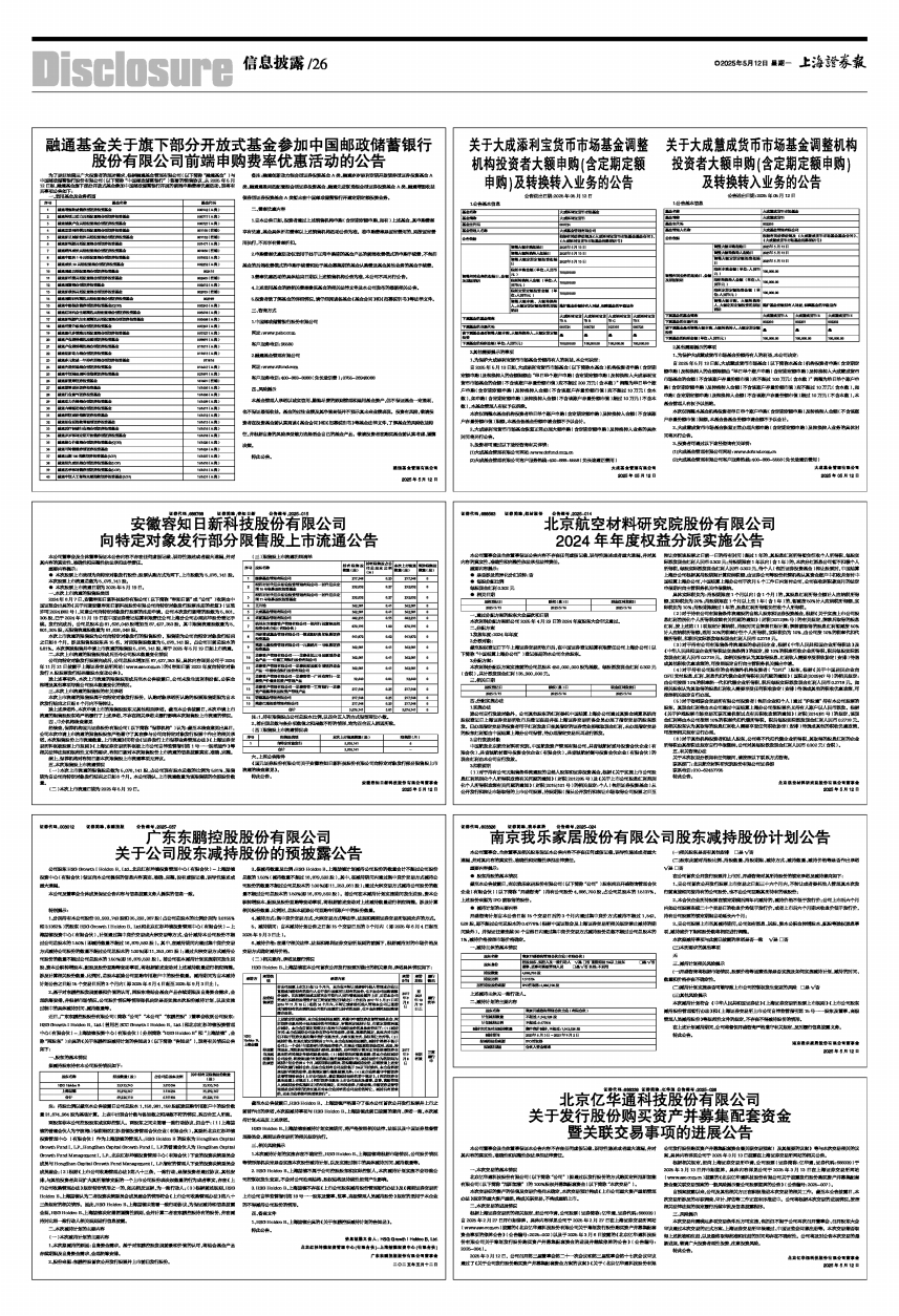 中国航发北京航空材料研究院、中国航发资产管理有限公司、共青城航材贰号投资合伙企业(有限合伙)、共青城航材壹号投资合伙企业(有限合伙)、共青城航材捌号投资合伙企业(有限合伙)的现金红利由本公司自行发放。