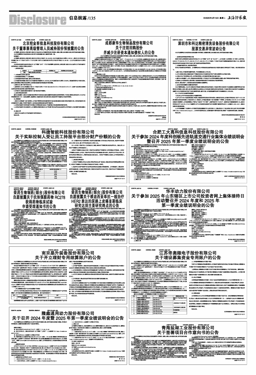 关于参加2024年度科创板先进轨道交通行业集体业绩说明会暨召开2025年第一季度业绩说明会的公告 -