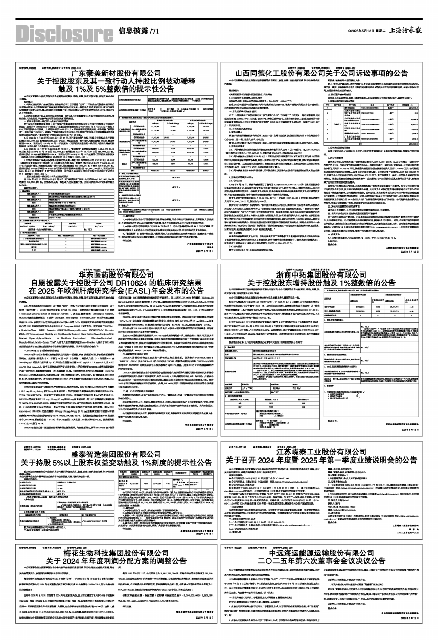 关于持股5%以上股东权益变动触及1%刻度的提示性公告 -