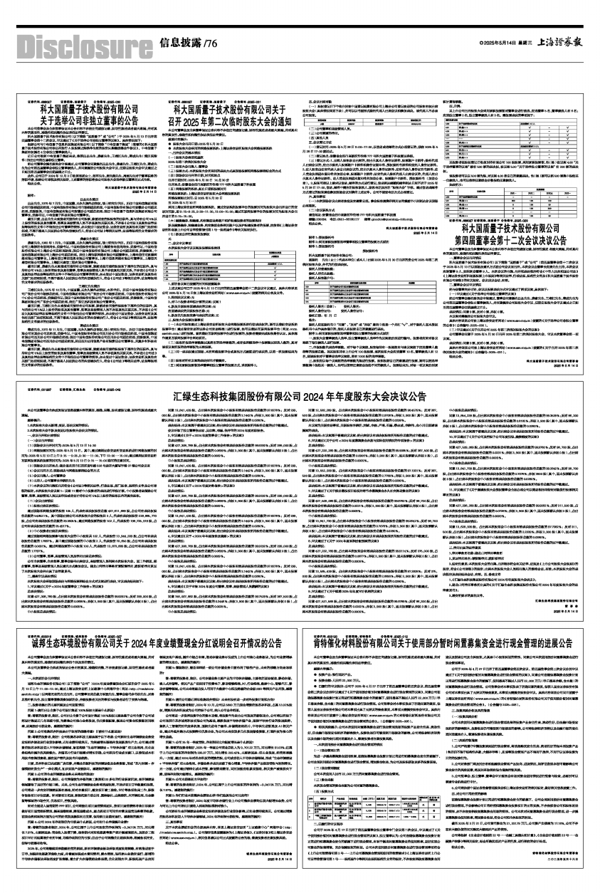汇绿生态科技集团股份有限公司2024年年度股东大会决议公告