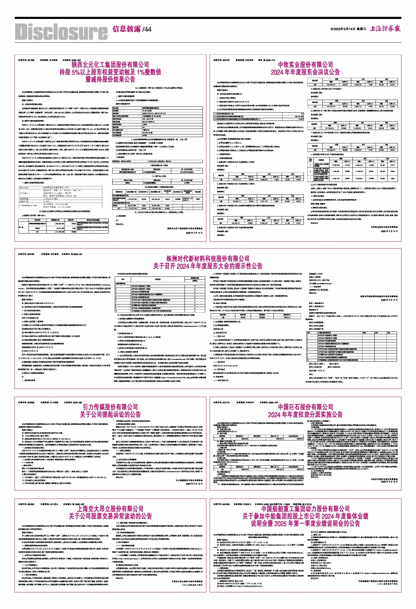 上述议案已分别经公司第十届董事会第二次会议、第十届监事会第二次会议审议通过,相关公告于2025年4月30日分别在《中国证券报》《上海证券报》《证券时报》《证券日报》和上海证券交易所网站(www.sse.com.cn)上予以披露。