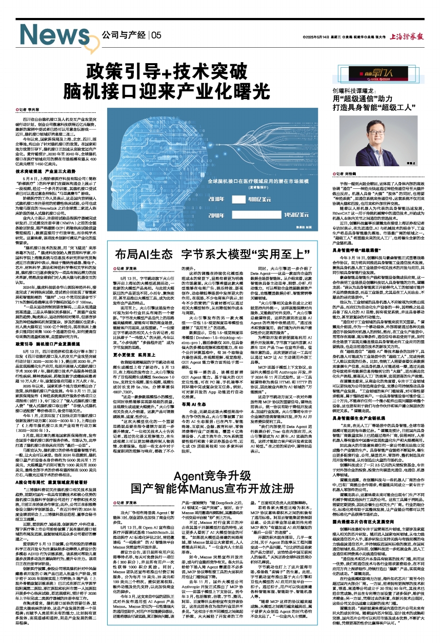 今年1月,北京印发了《加快北京市脑机接口创新发展行动方案(2025—2030年)》,上海出台了《上海市脑机接口未来产业培育行动方案(2025—2030年)》。