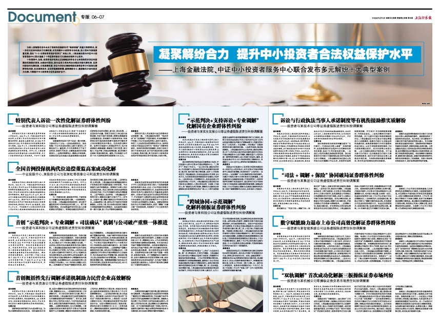 ——上海金融法院、中证中小投资者服务中心联合发布多元解纷十大典型案例