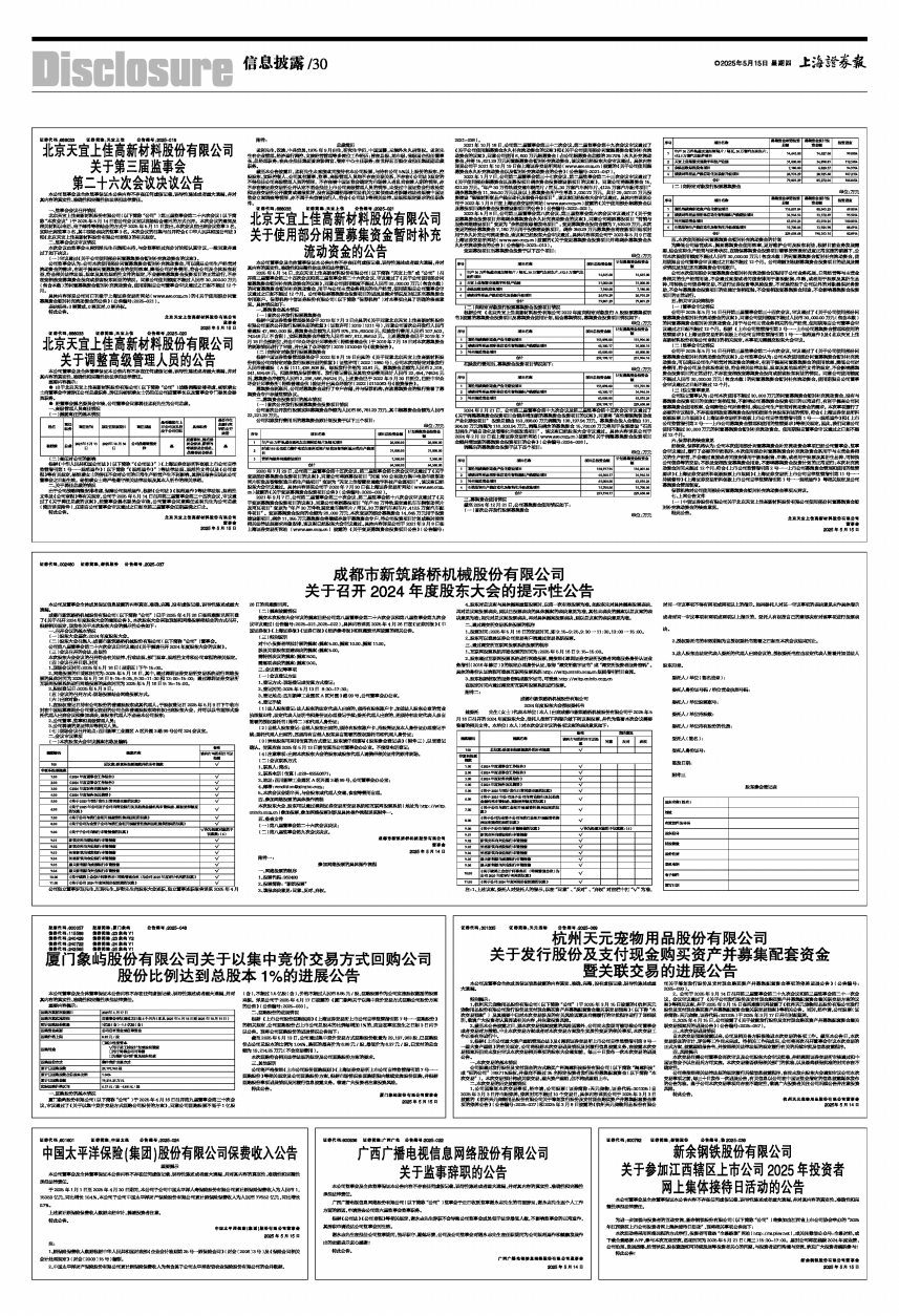 证券代码:688033 证券简称:天宜上佳 公告编号:2025-021
