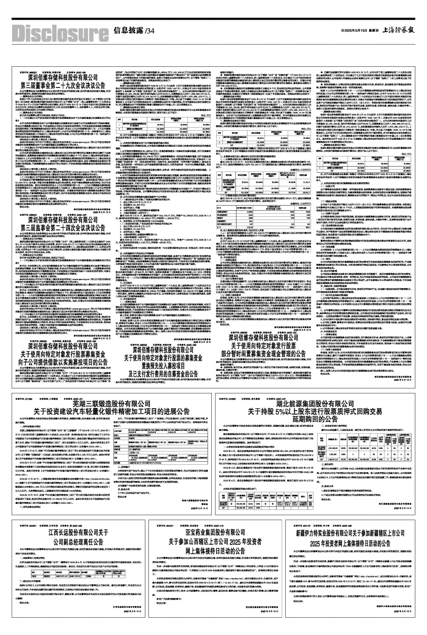 2024年5月9日,实施“汽车轻量化锻件精密加工项目”的主体芜湖兆联与芜湖市自然资源和规划局繁昌分局签署了《国有建设用地使用权出让合同》,规划用地面积约125亩,项目预计总投资额5亿元不变。具体内容详见《关于投资建设汽车轻量化锻件精密加工项目的进展公告》(公告编号:2024-032)。