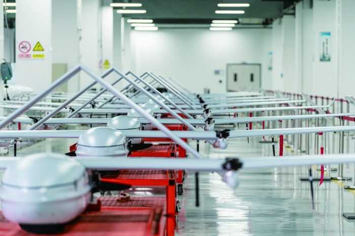 在成都天府新区的鹏飞科技园,工作人员正在进行无人机装配前检查。作为首家工业无人机上市公司,纵横股份2023年建成了这座5.4万平方米的工业无人机制造基地,可实现年产通用型工业无人机3700架。