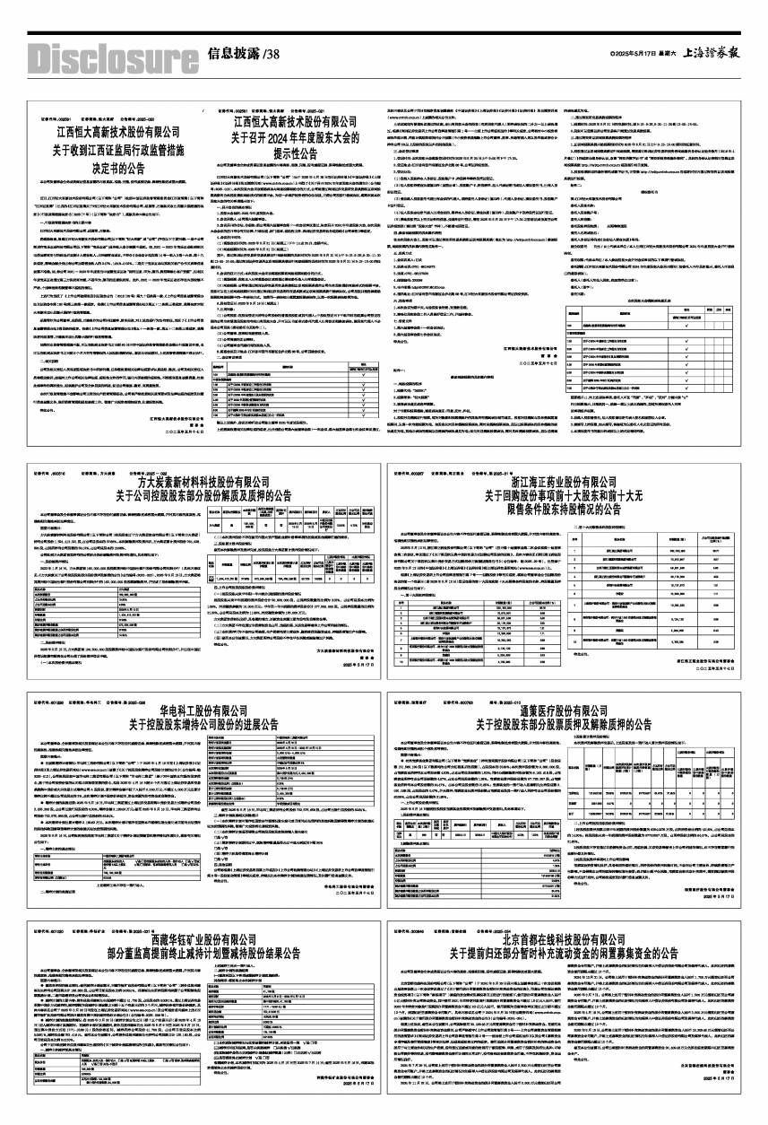 江西恒大高新技术股份有限公司(以下简称“公司”)已于2025年4月28日在《证券时报》《中国证券报》《上海证券报》《证券日报》及巨潮资讯网(www.cninfo.com.cn)上刊登了《关于召开2024年年度股东大会的通知》(公告编号:2025-018)。本次股东大会采取现场表决与网络投票相结合的方式,公司将通过深圳证券交易所交易系统和互联网投票系统向全体股东提供网络形式的投票平台。为进一步保护投资者的合法权益,方便公司股东行使表决权,现再次将本次股东大会的有关事项提示如下: