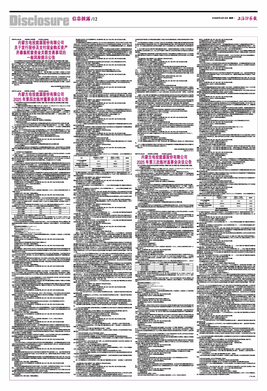 (一)内蒙古电投能源股份有限公司(简称“公司”或“上市公司”)于2025年5月12日和5月15日分别以电子邮件等形式发出2025年第四次临时董事会会议通知及其补充通知。