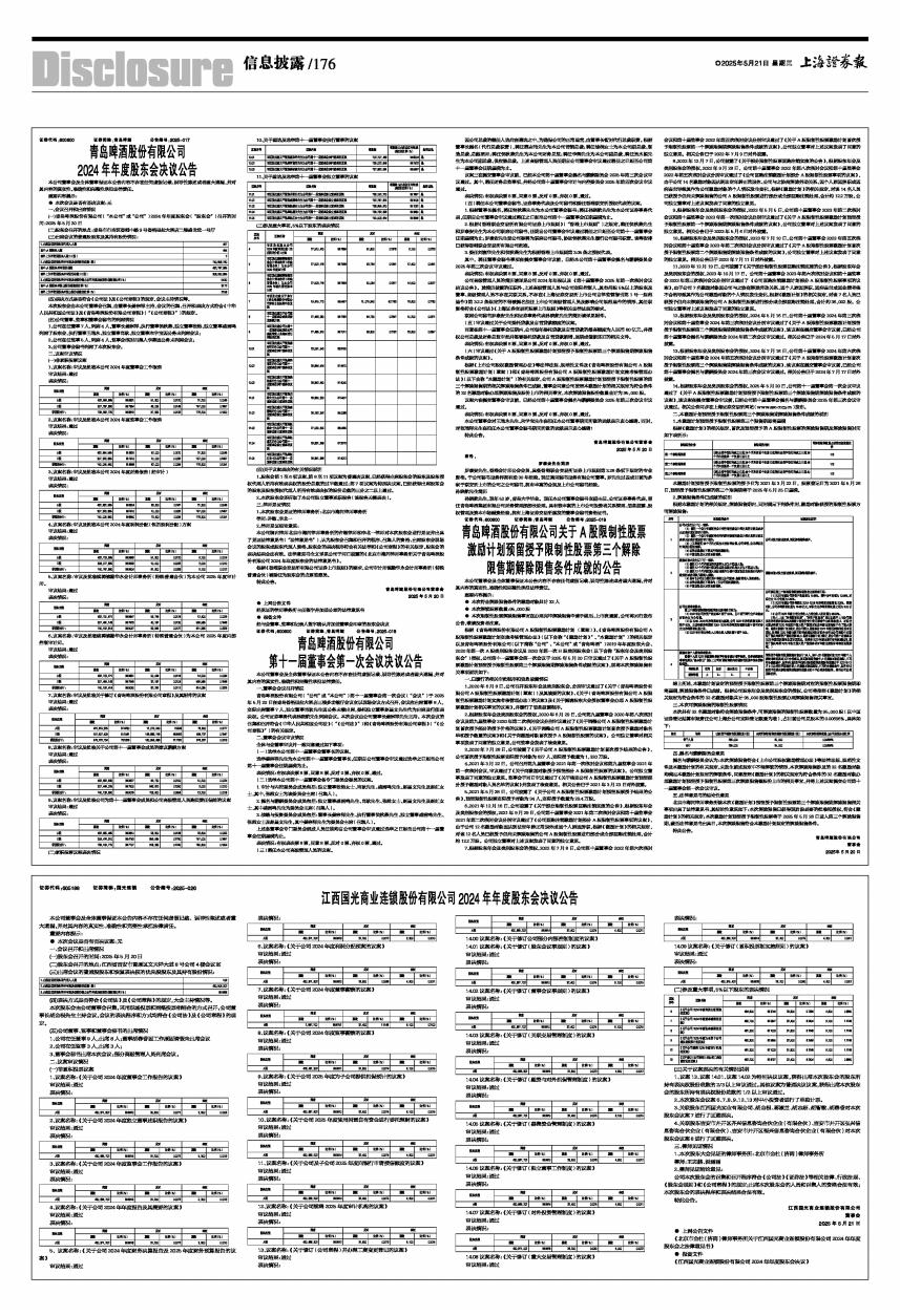 (一)青岛啤酒股份有限公司(“本公司”或“公司”)2024年年度股东会(“股东会”)召开的时间:2025年5月20日