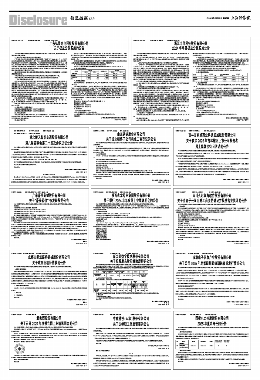 广东弘景光电科技股份有限公司(以下简称“公司”)于2025年5月19日召开2024年年度股东会,审议通过了《关于2024年度利润分配方案的议案》,具体内容为:以现有总股本6,354.6667万股为基数,向全体股东每10股派发现金红利15元(含税),不送红股,以资本公积金转增股本,每10股转增4股。在本次分配方案实施前,公司总股本由于增发新股、股权激励行权、可转债转股等原因发生变动的,公司将按照“现金分红总额、送红股总额、转增股本总额固定不变”的原则,在利润分配实施公告中披露按公司最新总股本计算的分配比例。