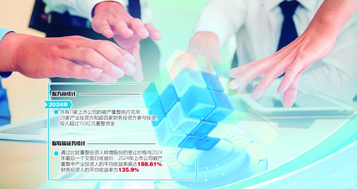 各路资本为何涌向破产重整?收益是关键。据券商统计,2024年,共有11家上市公司的破产重整执行完毕,28家产业投资方和超百家财务投资方参与投资,投入超过150亿元重整资金。从收益来看,个别投资人短期内浮盈甚至超过6倍。