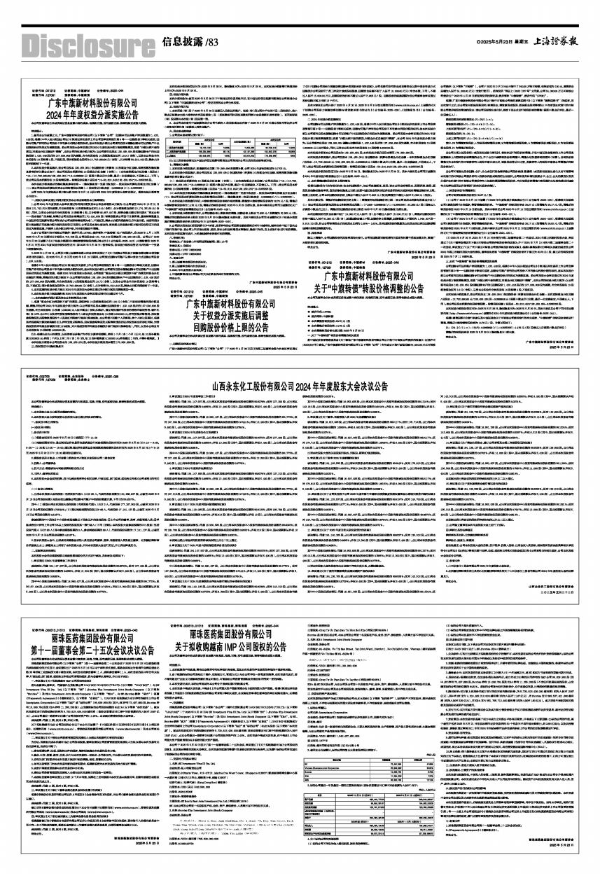 4、本次权益分派实施完毕后,公司回购价格上限将相应调整,回购价格上限由71.805元/股调整为51.382元/股。调整后的回购股份价格上限自2025年5月29日(除权除息日)起生效。具体内容详见公司同日披露的《关于权益分派实施后调整回购股份价格上限的公告》(公告编号:2025-045)。