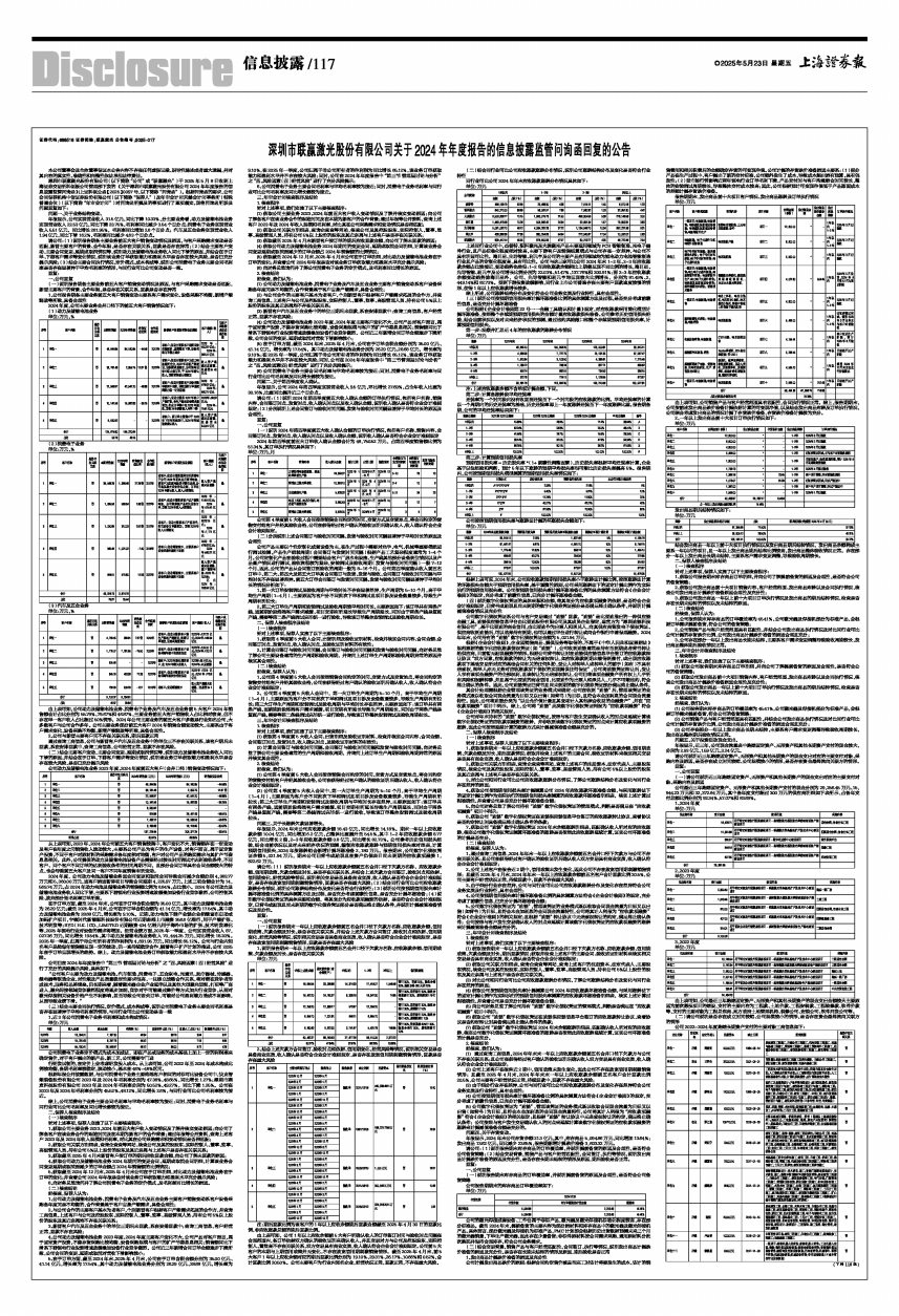 深圳市联赢激光股份有限公司(以下简称“公司”或“联赢激光”)于2025年5月8日收到上海证券交易所科创板公司管理部下发的《关于深圳市联赢激光股份有限公司2024年年度报告的信息披露监管问询函》(上证科创公函【2025】0097号,以下简称“问询函”)。根据问询函的要求,公司会同保荐机构中信证券股份有限公司(以下简称“保荐人”)及年审会计师天健会计师事务所(特殊普通合伙)(以下简称“年审会计师”)对问询函所提及的事项进行了逐项落实,现将问询函所涉及问题回复如下: