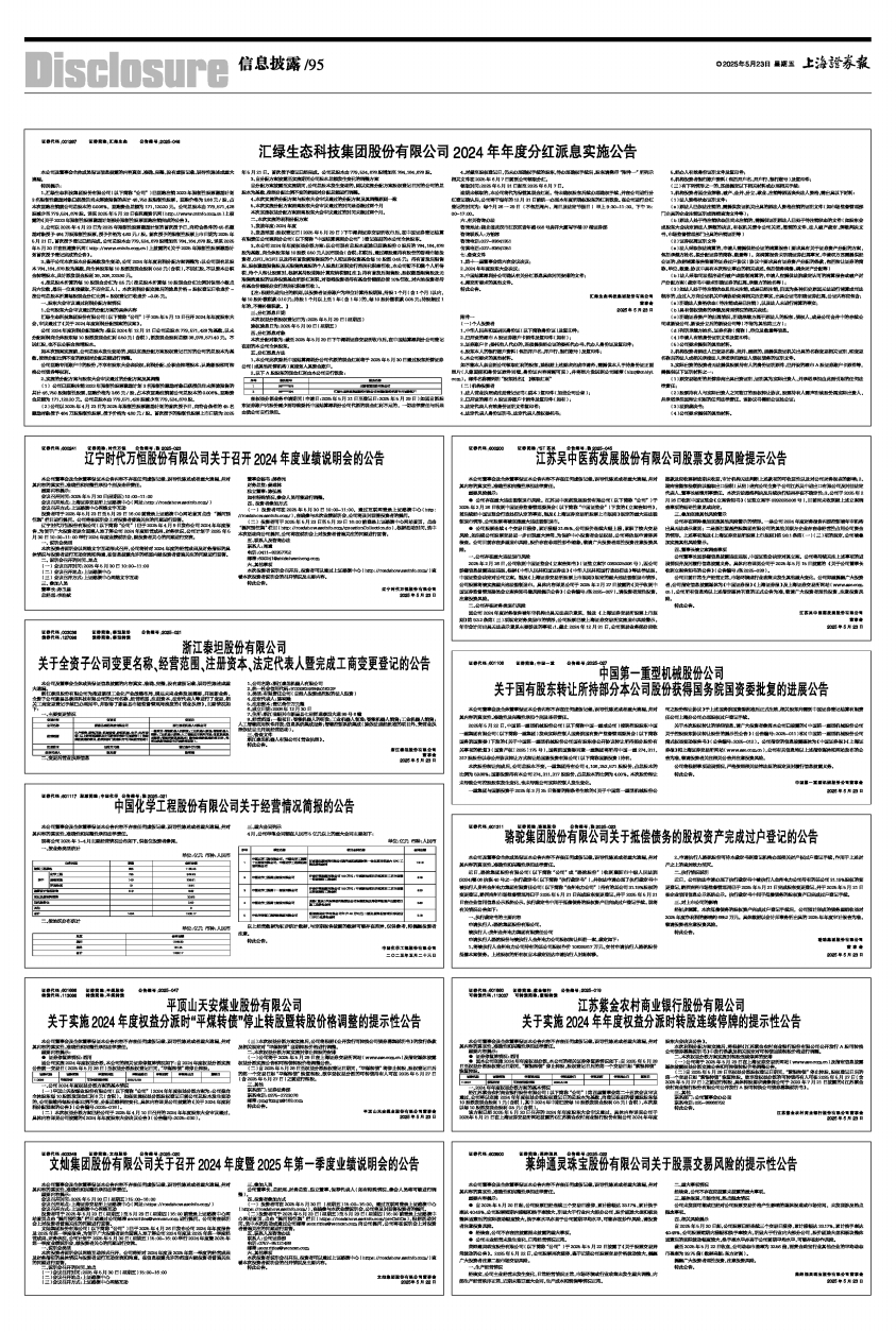 汇绿生态科技集团股份有限公司2024年年度分红派息实施公告