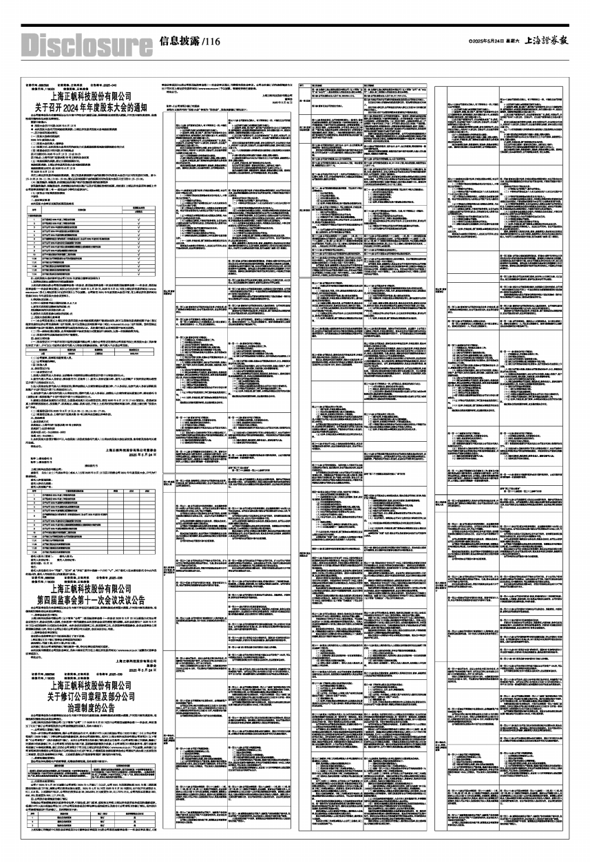 上海正帆科技股份有限公司(以下简称“公司”)于2025年5月23日召开公司第四届董事会第十一次会议,审议通过了《关于修订公司章程及部分公司治理制度的议案》,具体内容如下: