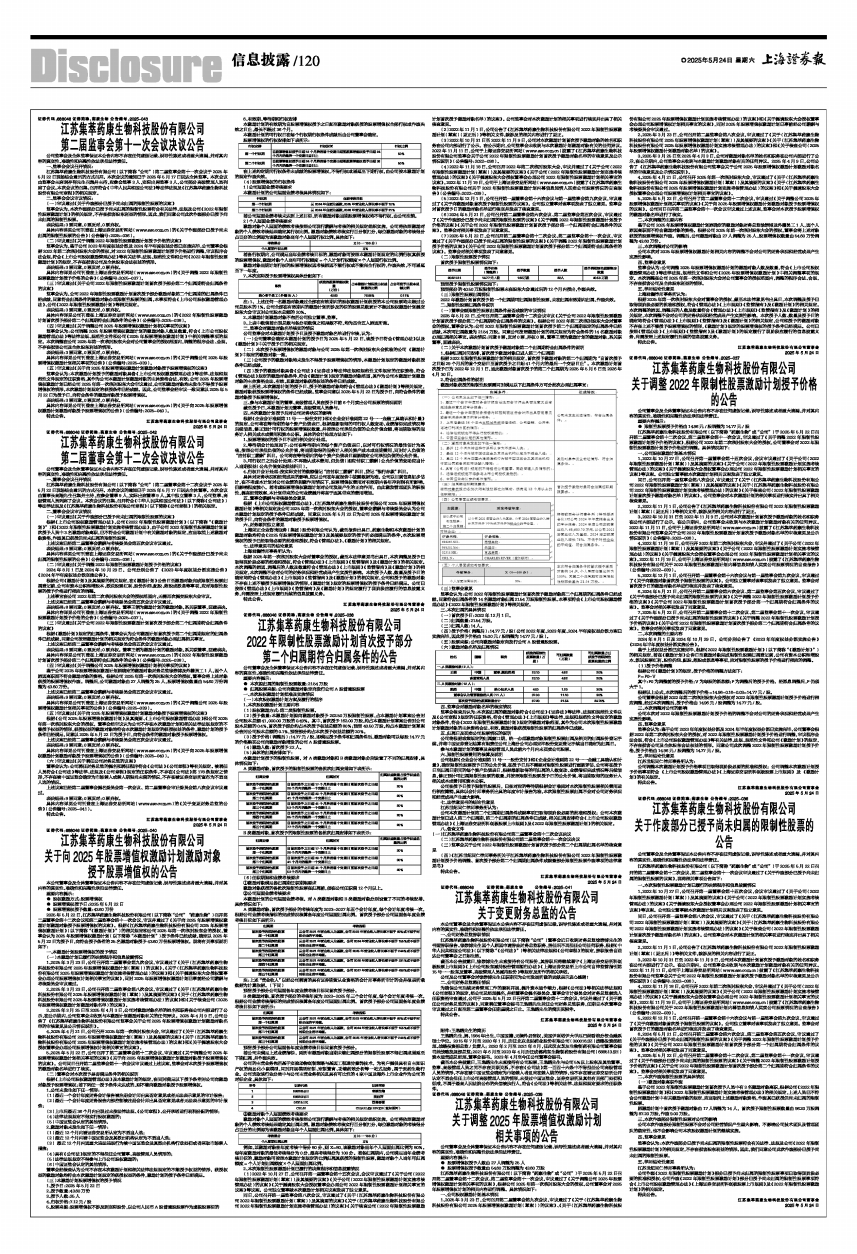 江苏集萃药康生物科技股份有限公司(以下简称“药康生物”或“公司”)于2025年5月22日召开的第二届董事会第十二次会议、第二届监事会第十一次会议审议通过了《关于作废部分已授予尚未归属的限制性股票的议案》,现将相关事项公告如下: