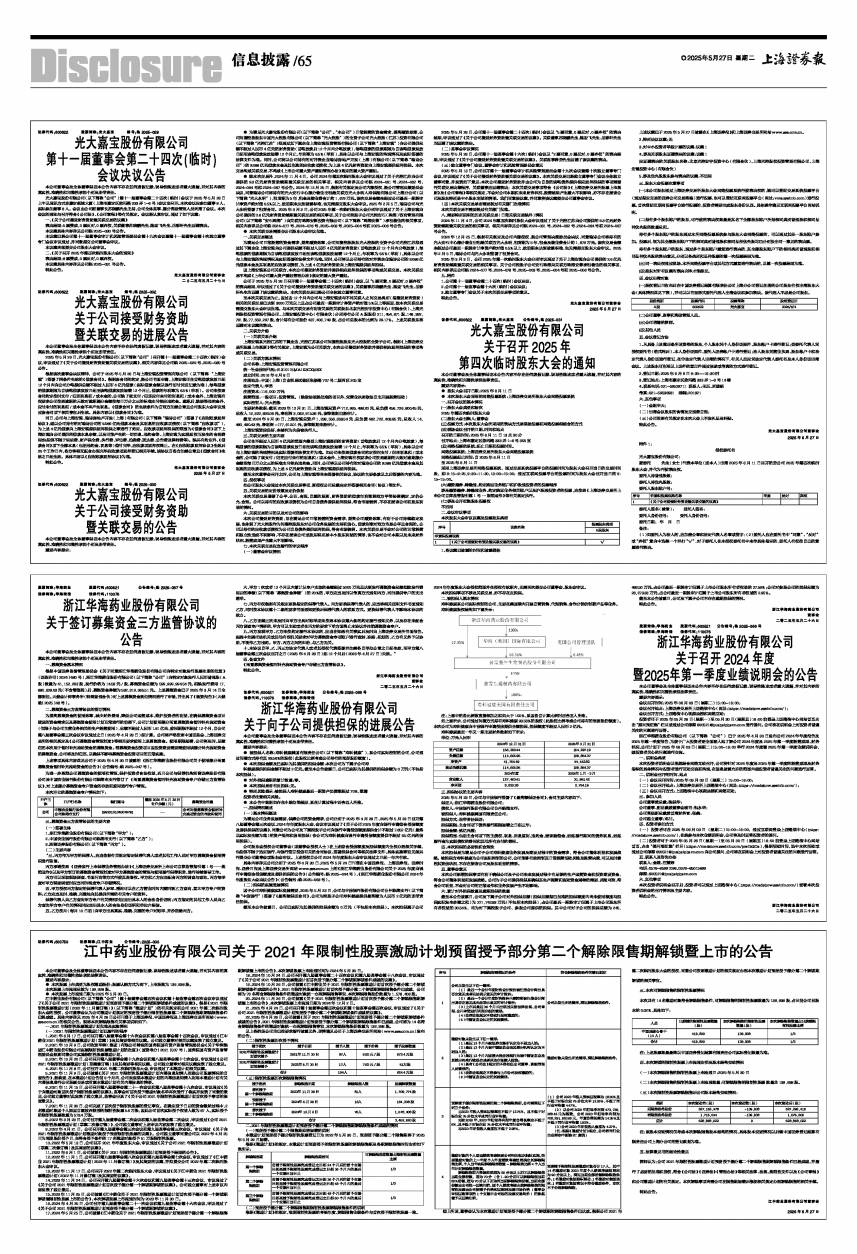 股票简称:华海药业 股票代码:600521 公告编号:临2025-067号
