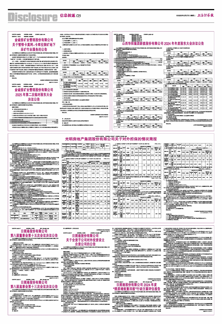 近日,卡莫阿-卡库拉铜矿的卡库拉矿段接连发生多次矿震,该矿段的东区发生多处冒顶片帮,震因不明(具体情况详见紫金矿业(601899.SH)于2025年5月24日发布的《紫金矿业集团股份有限公司关于刚果(金)卡莫阿-卡库拉铜矿暂停部分井下采矿的公告》(编号:临2025-046))。虽然金刚矿业承接的主要为卡库拉矿段西区地下采矿作业服务,但出于安全考虑,经与业主方协商,金刚矿业暂停地下采矿作业服务,后续业主方将根据对矿震原因的调查情况,对恢复开采进行统一安排。