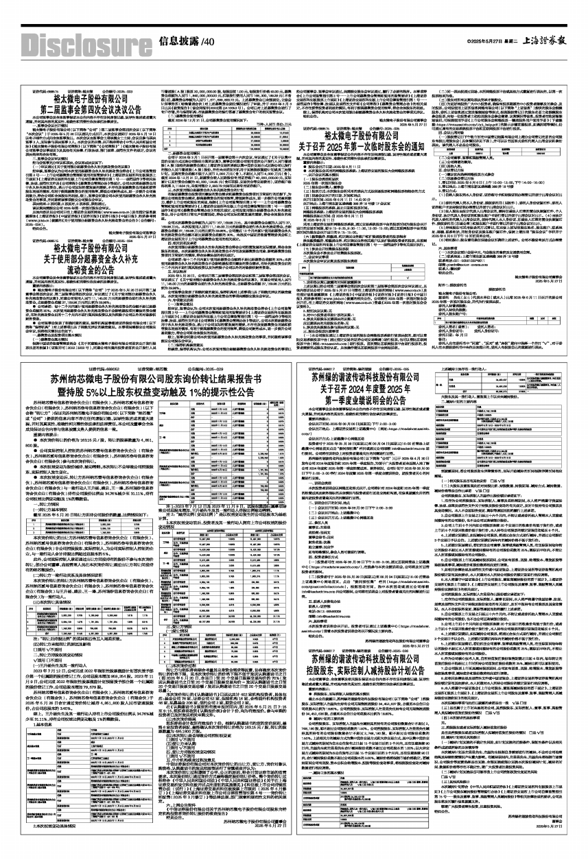 苏州纳芯壹号信息咨询合伙企业(有限合伙)、苏州纳芯贰号信息咨询合伙企业(有限合伙)、苏州纳芯叁号信息咨询合伙企业(有限合伙)于2025年5月26日合计通过询价转让减持4,851,800股人民币普通股股份,占公司总股本的3.40%。