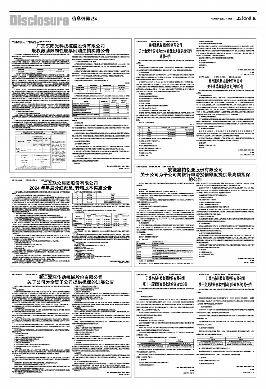 1、三友联众集团股份有限公司(以下简称“公司”)2024年年度利润分配方案已获2025年5月16日召开的2024年年度股东大会审议通过,2024年年度利润分配方案为:以截至2024年12月31日公司的总股本228,645,713股为基数,向全体股东每10股派发现金红利2.18元(含税),不送红股,共计派发现金红利49,844,765.43元(含税),剩余未分配利润留存至下一年度。同时以2024年12月31日公司总股本228,645,713为基数,以资本公积金转增股本,向全体股东每10股转增4股,转增后公司总股本增加到320,103,998股(转增股数系公司自行计算所得,最终转增数量以中国证券登记结算有限公司深圳分公司实际登记确认的数量为准)。自2024年12月31日起至实施权益分派股权登记日期间,公司总股本发生变动的,公司按照维持分配总额和转增总股数不变的原则,相应调整每股分配比例和转增比例。