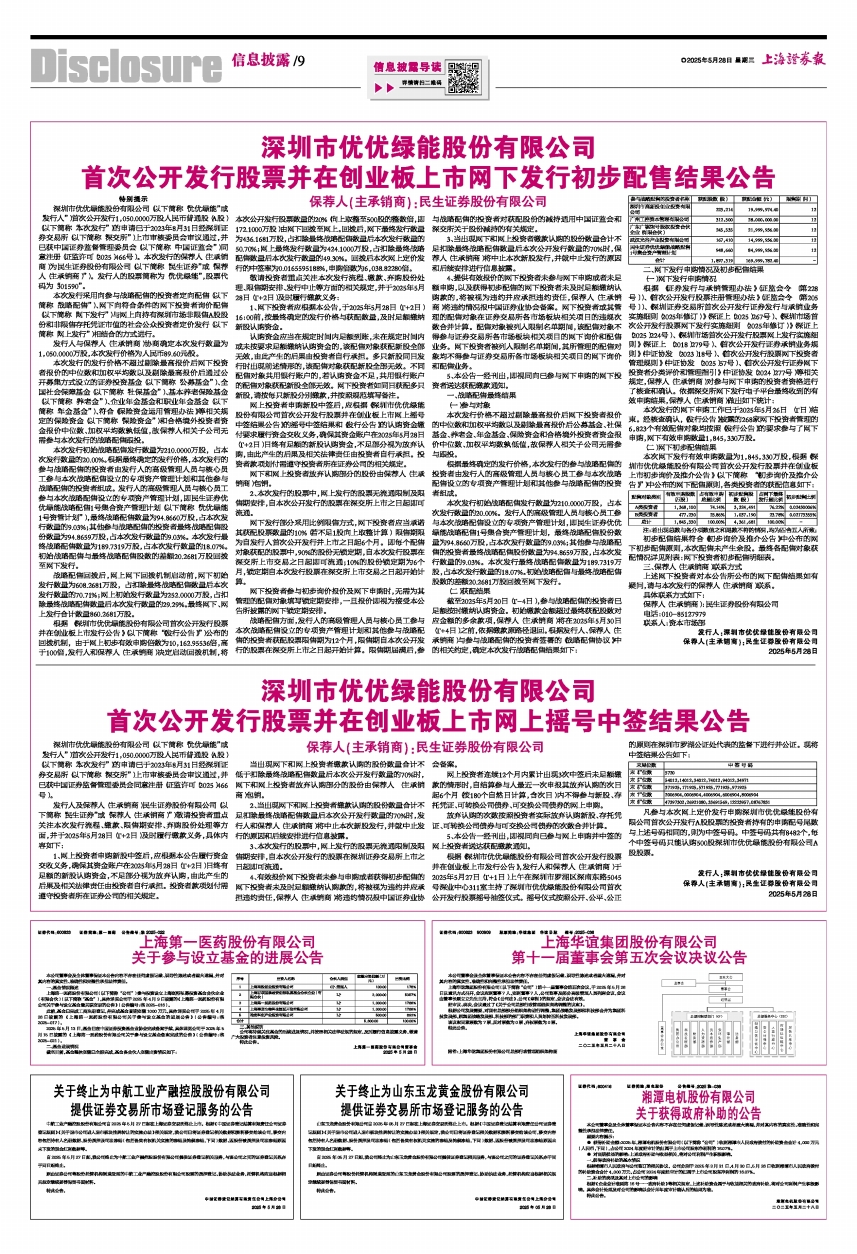 深圳市优优绿能股份有限公司(以下简称“优优绿能”或“发行人”)首次公开发行1,050.0000万股人民币普通股(A股)(以下简称“本次发行”)的申请已于2023年8月31日经深圳证券交易所(以下简称“深交所”)上市审核委员会审议通过,并已获中国证券监督管理委员会(以下简称“中国证监会”)同意注册(证监许可〔2025〕466号)。本次发行的保荐人(主承销商)为民生证券股份有限公司(以下简称“民生证券”或“保荐人(主承销商)”)。发行人的股票简称为“优优绿能”,股票代码为“301590”。
