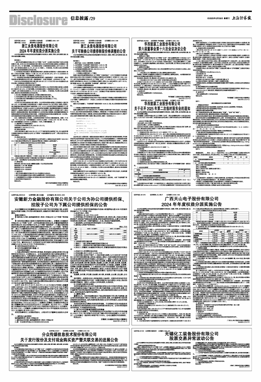 公司拟于2025年6月13日(星期五)召开2025年第二次临时股东会,审议董事会有关议案,股权登记日为2025年6月9日(星期一),会议详情请见公司将刊载于《中国证券报》、《上海证券报》、《证券时报》《证券日报》以及巨潮资讯网(www.cninfo.com.cn)披露的《关于召开2025年第二次临时股东会的通知》。