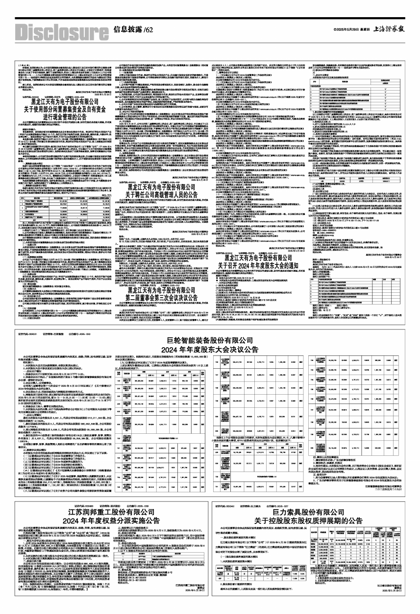 江苏润邦重工股份有限公司(以下简称“公司”或“本公司”或“我公司”)2024年年度权益分派方案已获2025年5月23日召开的2024年度股东大会审议通过,现将权益分派事宜公告如下:
