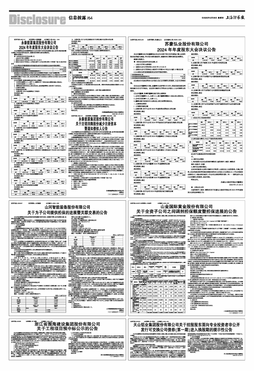山河智能装备股份有限公司(以下简称“公司”)于2025年4月24日召开的第八届董事会第二十一次会议、第八届监事会第十五次会议及于2025年5月20日召开的2024年年度股东大会审议通过了《关于为子公司提供担保的议案》,同意公司为全资及控股子公司提供总额为人民币136,935万元的担保。担保业务具体实施时,公司可视情况决定由公司或下属子公司为全资或控股子公司提供担保,可根据与金融机构的协商签订相关担保合同。上述内容详见公司于2025年4月26日刊载在《中国证券报》《证券时报》《上海证券报》及巨潮资讯网 (www.cninfo.com.cn)的《关于为子公司提供担保的公告》。