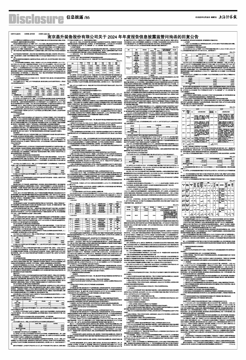 南京晶升装备股份有限公司(以下简称“公司”)于近日收到上海证券交易所科创板公司管理部下发的《关于南京晶升装备股份有限公司2024年年度报告的信息披露监管问询函》(上证科创公函【2025】0128号)(以下简称“《年报问询函》”)。根据《年报问询函》的要求,公司与华泰联合证券有限责任公司(以下简称“持续督导机构”)、容诚会计师事务所(特殊普通合伙)(以下简称“年报会计师”)就《年报问询函》提及的事项逐项进行了认真核查与落实,现将《年报问询函》所涉及问题回复如下: