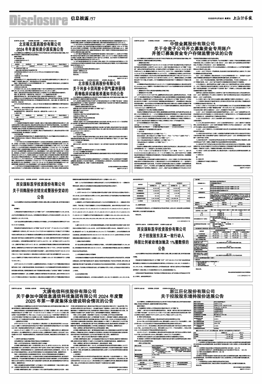 3、截至2025年5月20日,股份回购实施期限届满,公司累计通过回购专用证券账户以集中竞价交易方式回购公司股份19,304,400股,占公司目前总股本比例为0.8540%,最高成交价5.618元/股,最低成交价4.61元/股,成交总金额100,019,214.1元(不含交易费用)。公司本次回购股份方案已实施完成,实际回购时间区间为2024年5月27日至2025年5月9日,具体内容详见《关于股份回购实施结果暨股份变动公告》(公告编号:2025-024)。