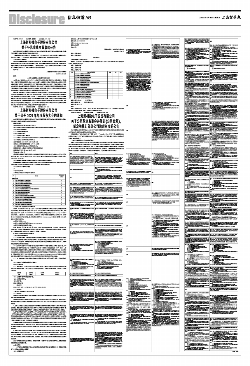 议案1-12已经公司于2025年4月24日召开的第二届董事会第七次会议和第二届监事会第七次会议审议通过,其余议案已经公司于2025年5月29日召开的第二届董事会第八次会议审议通过。具体详见公司于2025年4月26日、2025年5月30日在上海证券交易所网站(www.sse.com.cn)及《中国证券报》、《上海证券报》、《证券时报》、《证券日报》、《经济参考报》披露的相关公告及文件。公司将在2024年年度股东大会召开前,在上海证券交易所网站(www.sse.com.cn)登载《新相微2024年年度股东大会会议资料》。