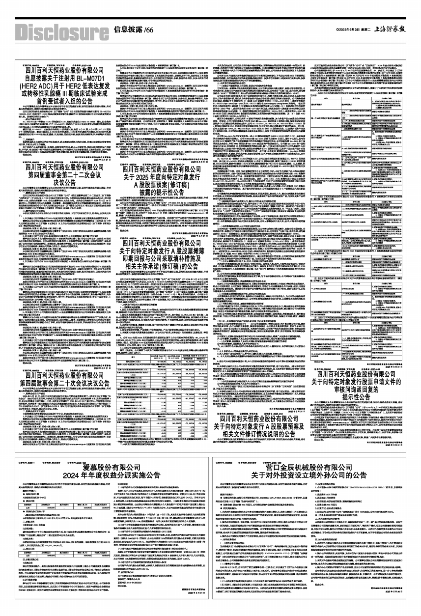 具体内容详见公司于同日在上海证券交易所网站(www.sse.com.cn)披露的《四川百利天恒药业股份有限公司2025年度向特定对象发行A股股票预案(修订稿)》。