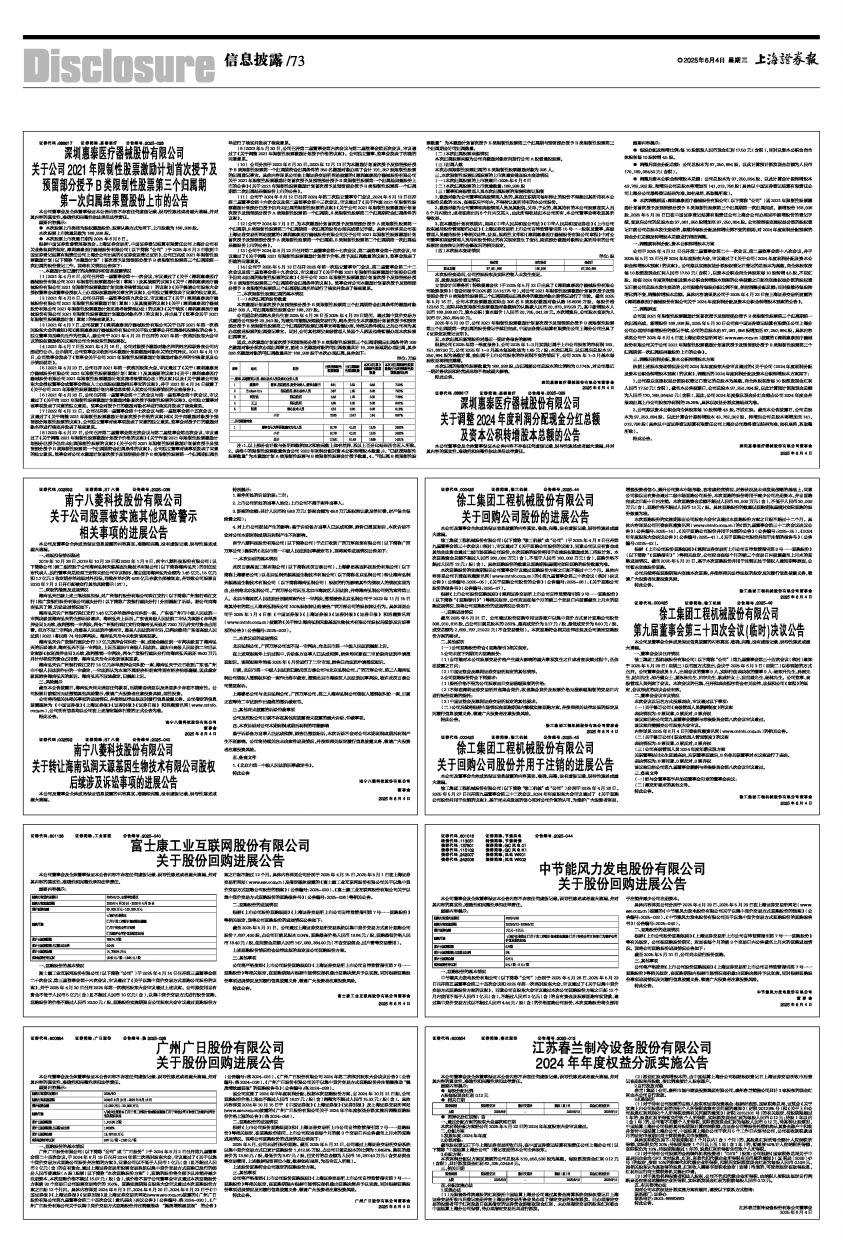 具体内容详见公司分别于2025年4月29日、2025年5月29日在上海证券交易所网站(www.sse.com.cn)披露的《中节能风力发电股份有限公司关于以集中竞价交易方式回购股份的预案》(公告编号:2025-032)、《中节能风力发电股份有限公司关于以集中竞价交易方式回购股份的回购报告书》(公告编号:2025-040)。