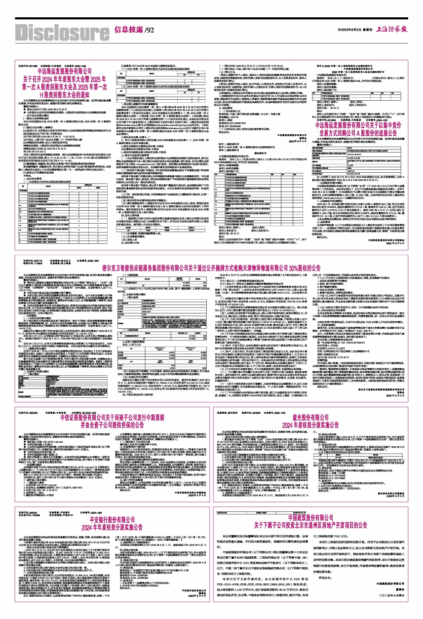 1、紫光股份有限公司(以下简称“公司”)2024年度利润分配方案已获2025年5月20日召开的2024年度股东大会审议通过,具体方案为:以2024年末公司总股本2,860,079,874股为基数,向全体股东每10股派发现金股利0.75元(含税),共计派送现金214,505,990.55元。2024年度不送红股,不以公积金转增股本。若2024年度利润分配方案实施前公司总股本发生变化,将按照“现金分红总金额不变”的原则对每股分配金额进行相应调整。